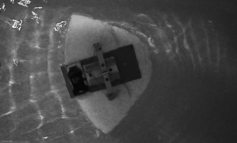 Fig. 1. Boat with an asymmetric vibration motor in motion.