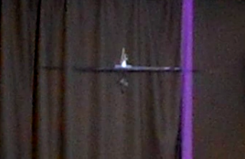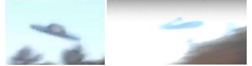 Fig. 5 and Fig. 6. Flying saucer with a vibration motor in flight. Left: The reflection of light creates an optical effect similar to lights at the edge, probably due to vibration. Right: The blurring of the photo due to vibration creates the illusion of a distorted form.